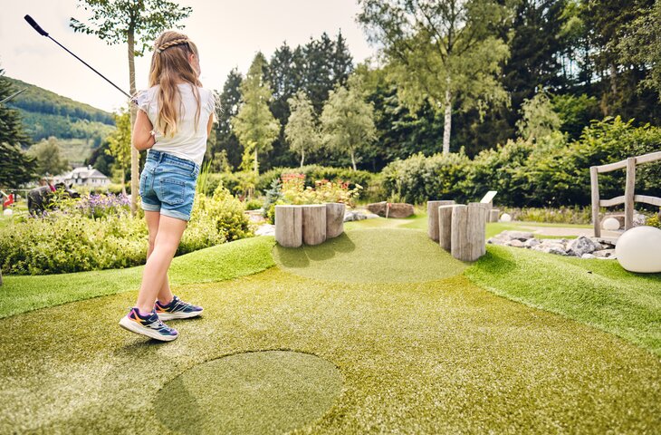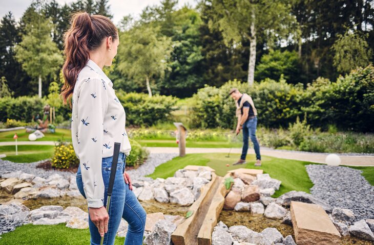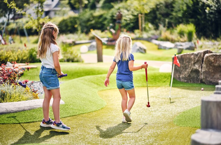 Betreten Sie die märchenhafte Welt unseres Adventure-Golfplatzes im Hotel Deimann, wo anspruchsvolle Bahnen und liebevoll handgeschnitzte Figuren eine unvergleichliche Atmosphäre schaffen. Große und kleine Gäste sind eingeladen, sich in diesem zauberhaften Setting einer Partie Golf hinzugeben, die Geschicklichkeit und Fantasie gleichermaßen fordert. Erleben Sie eine neue Form des Minigolfs!