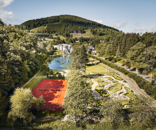 Tennisplatz - Genießen Sie ein energiegeladenes Match auf unserem hauseigenen Tennisplatz, perfekt für Spieler aller Niveaus, die ihre Fähigkeiten unter freiem Himmel verbessern möchten.