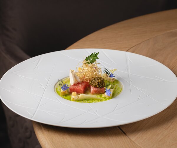 Erleben Sie kulinarische Exzellenz im Gourmetrestaurant Hofstube Deimann, wo exquisite Geschmacksnuancen und kreative Kochkunst aufeinandertreffen. Unsere Sterneküche verwandelt sorgfältig ausgewählte, regionale Zutaten in unvergessliche Gaumenfreuden, serviert in einem Ambiente, das Eleganz und Gemütlichkeit vereint.