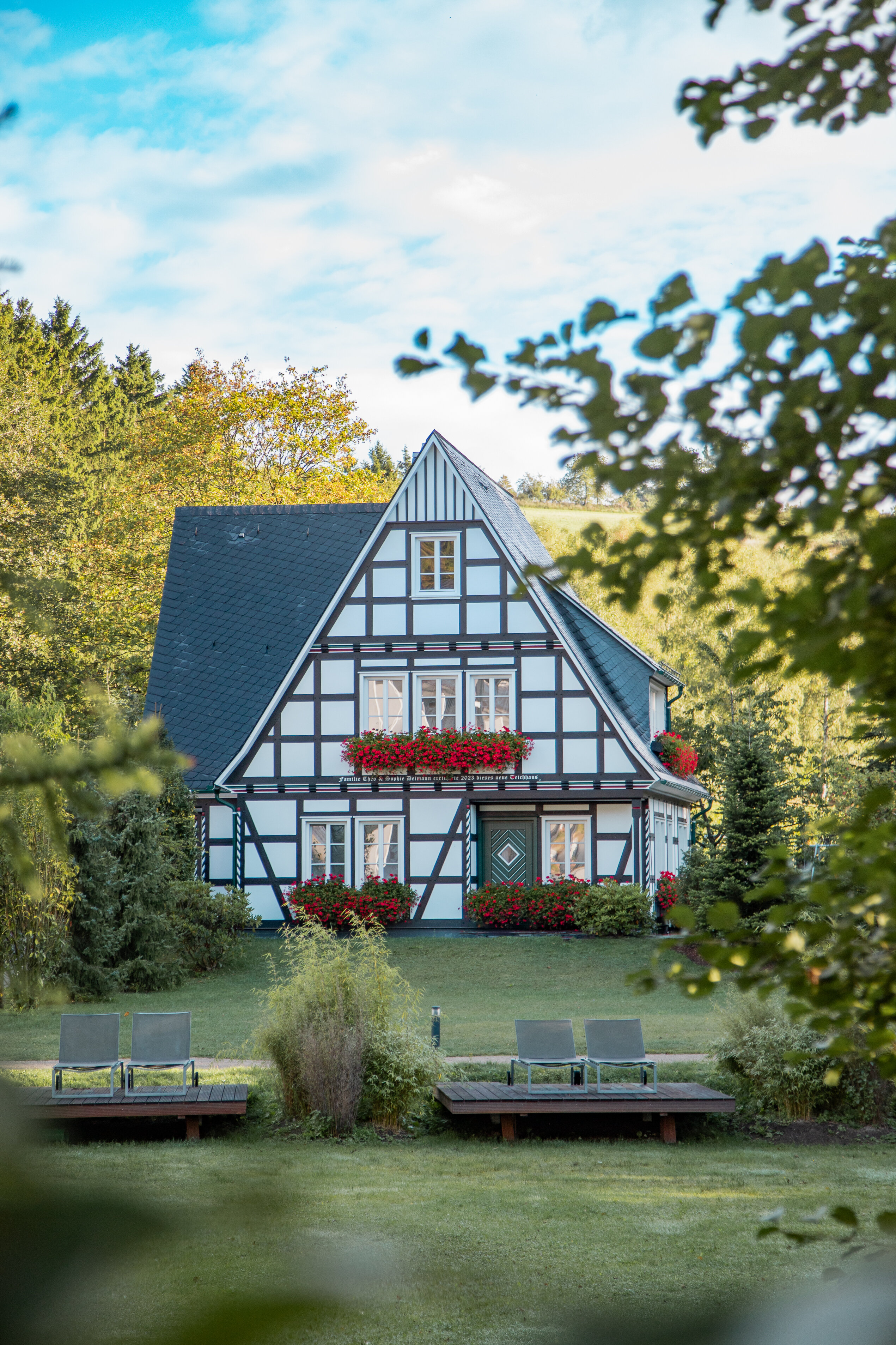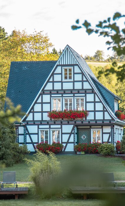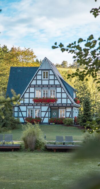 Im Inneren erwarten Sie klare Linien, warme Materialien und ein weiter Blick ins Grüne. Die ruhige Gestaltung lädt dazu ein, den Tag zu entschleunigen – beim Lesen, Malen oder einfach beim Zur-Ruhe-Kommen.